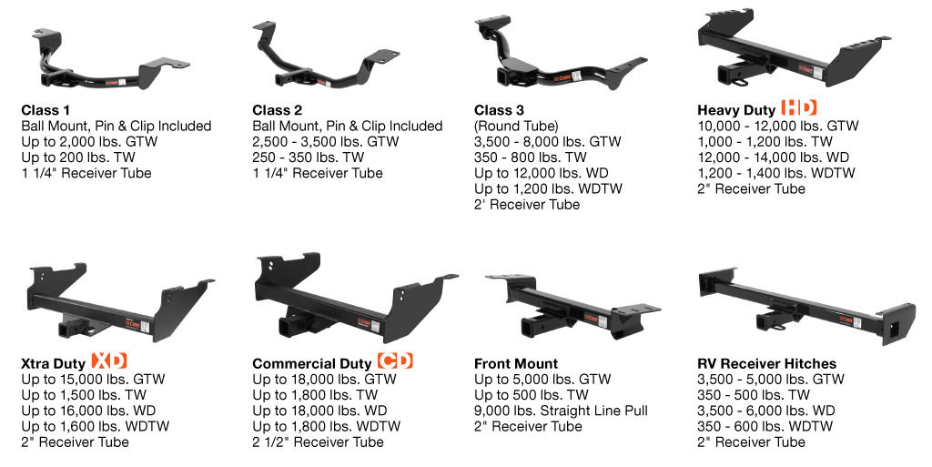 Trailer tow hitches are classified according to the maximum Gross Trailer Weight (GTW), the size of the receiver tube and the size of the tow ball. The trailer tow classification list of basic styles of hitches includes;